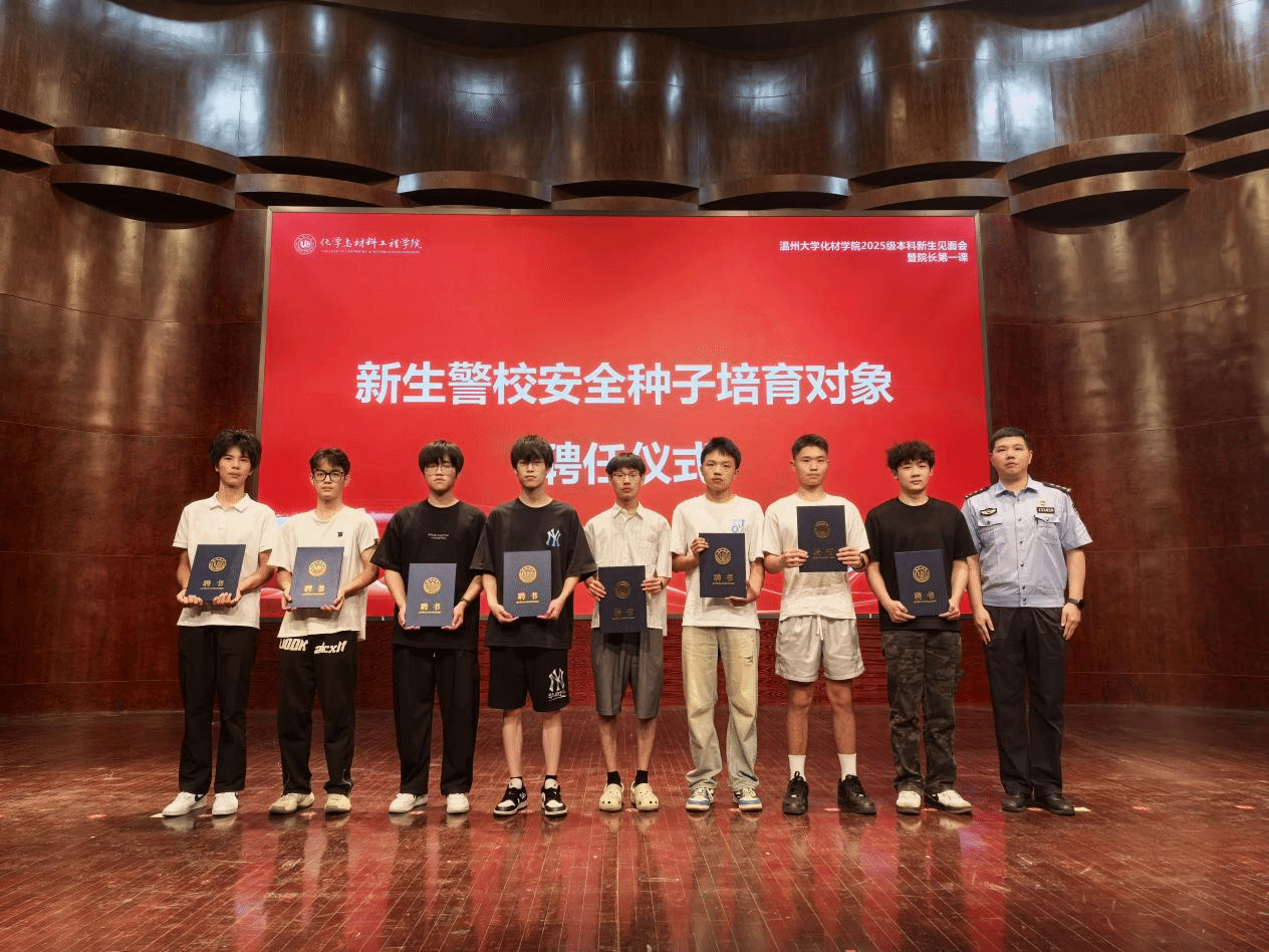 在警校协同育人环节,王晓华副书记为潘鸿浩警长颁发 “成长安全导师” 聘书,正式聘任潘警长为学院警校协同育人导师;同时,潘警长为新生警校安全种子代表颁发聘书,这些 “安全种子” 将成为学院宣传安全知识、铸牢意识形态安全防线、守护平安校园的骨干力量,以 “种子” 之力孕育 “安全” 之果。