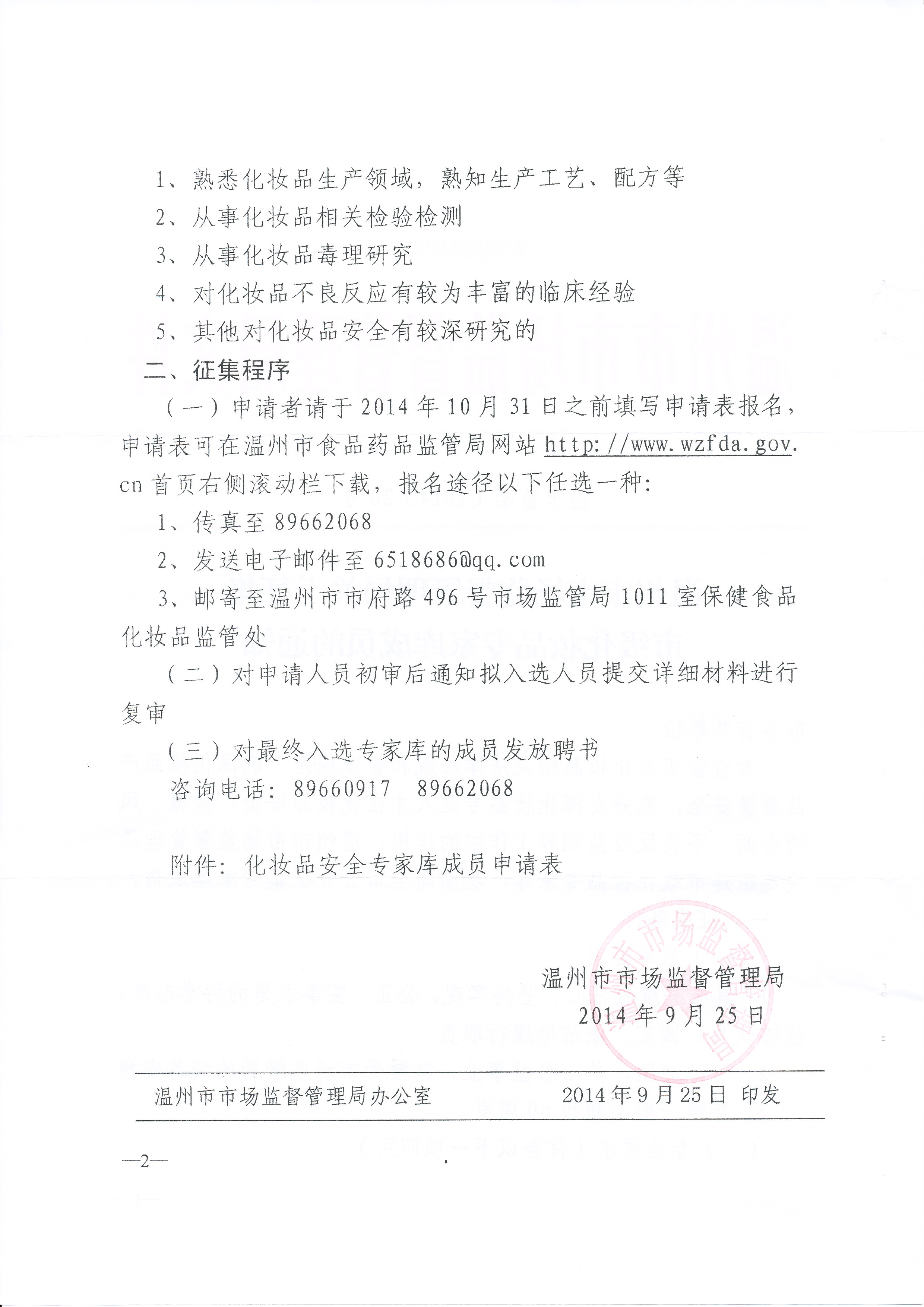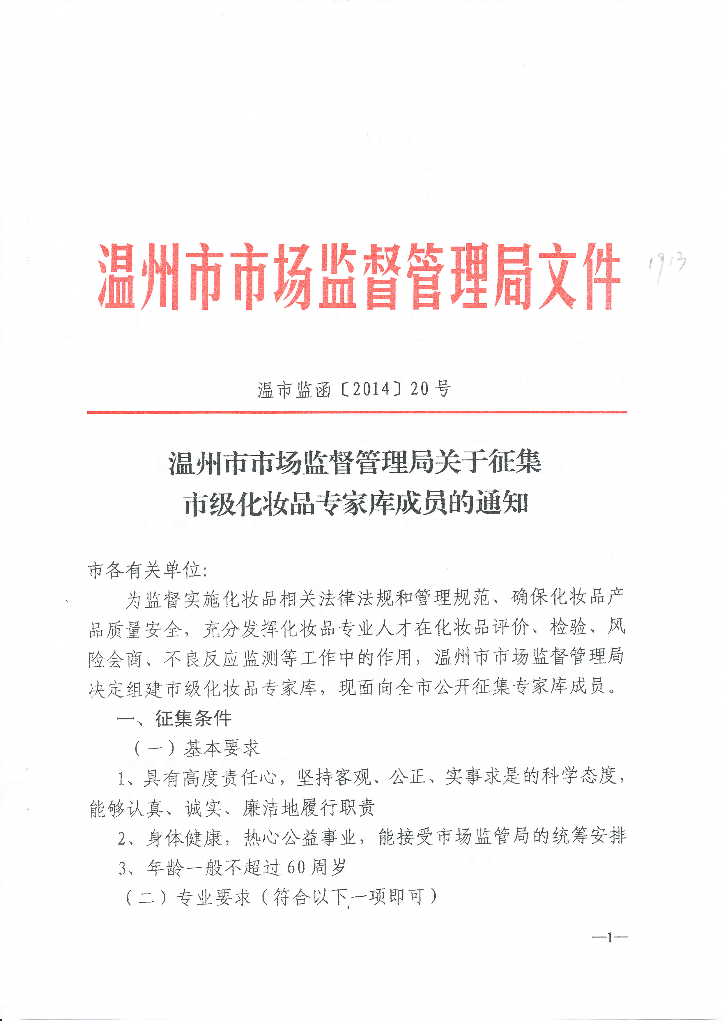 转发:温州市市场监督管理局关于征集市级化妆品专家库成员的通知