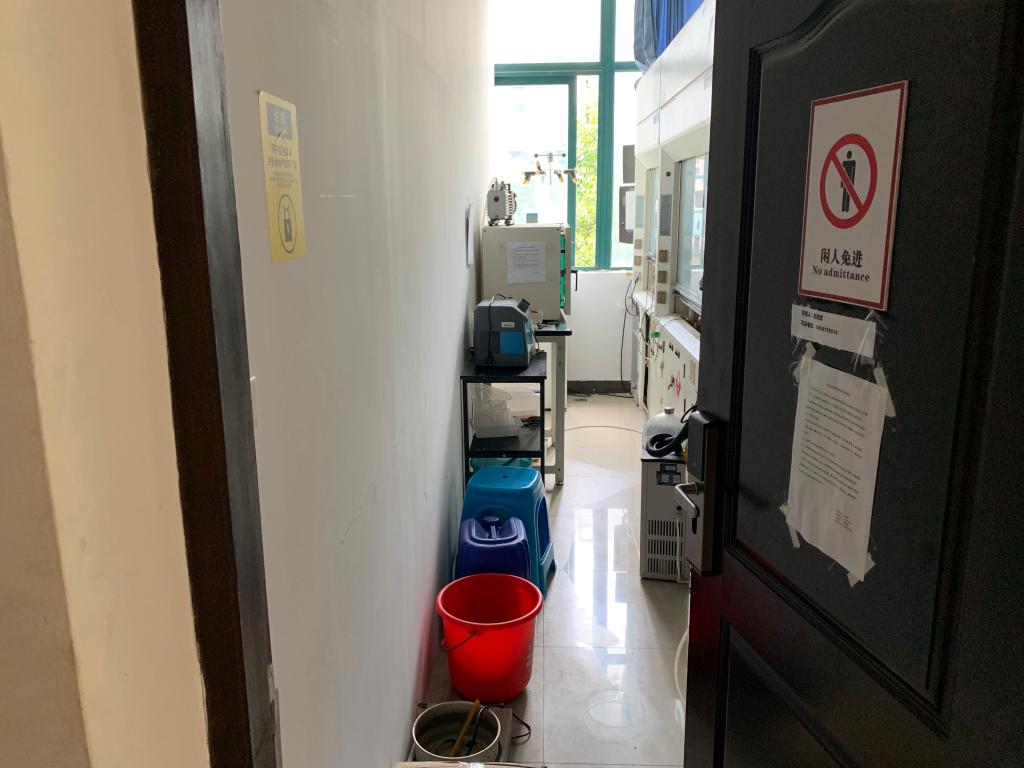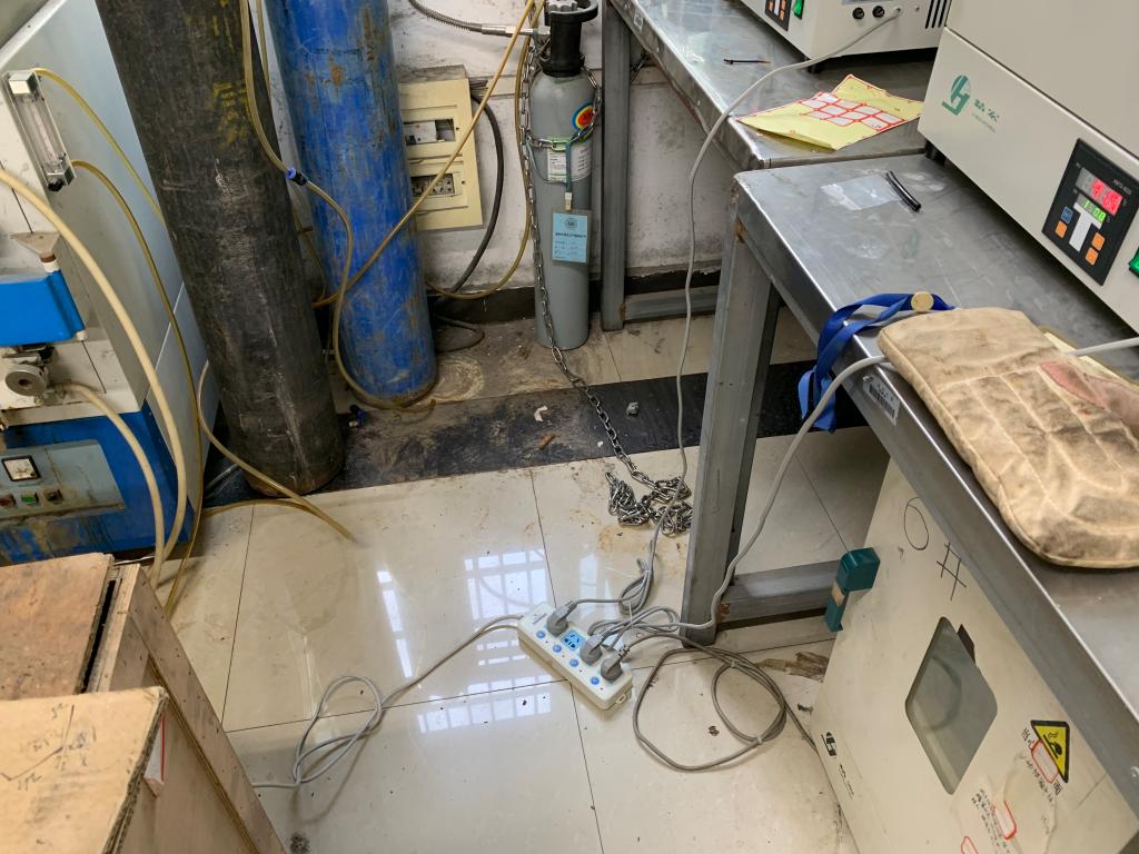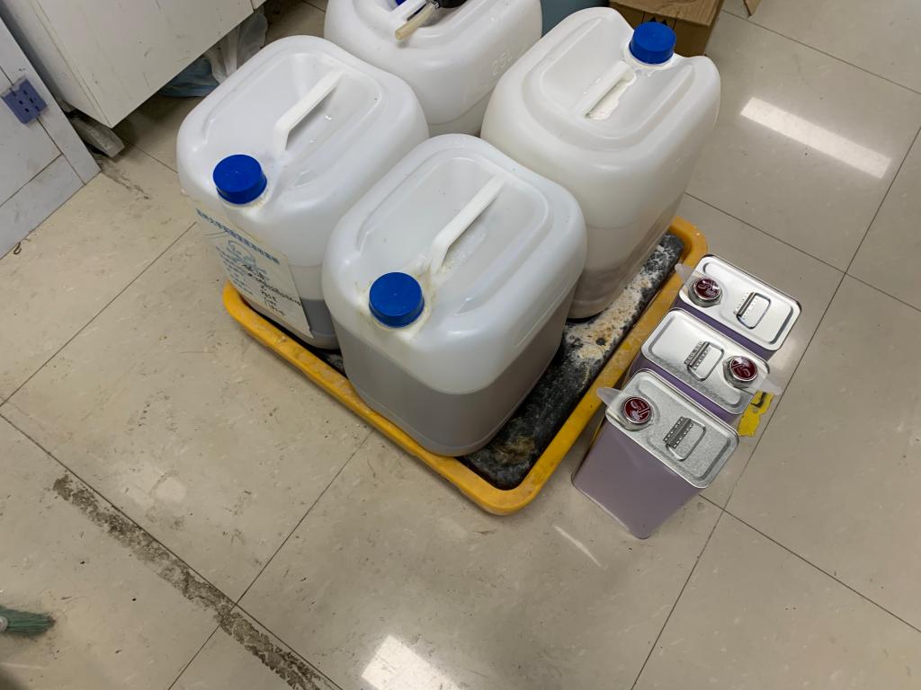 11B402废液桶未贴标签 11B108B多个插线板直接放在地面(烘箱旁)