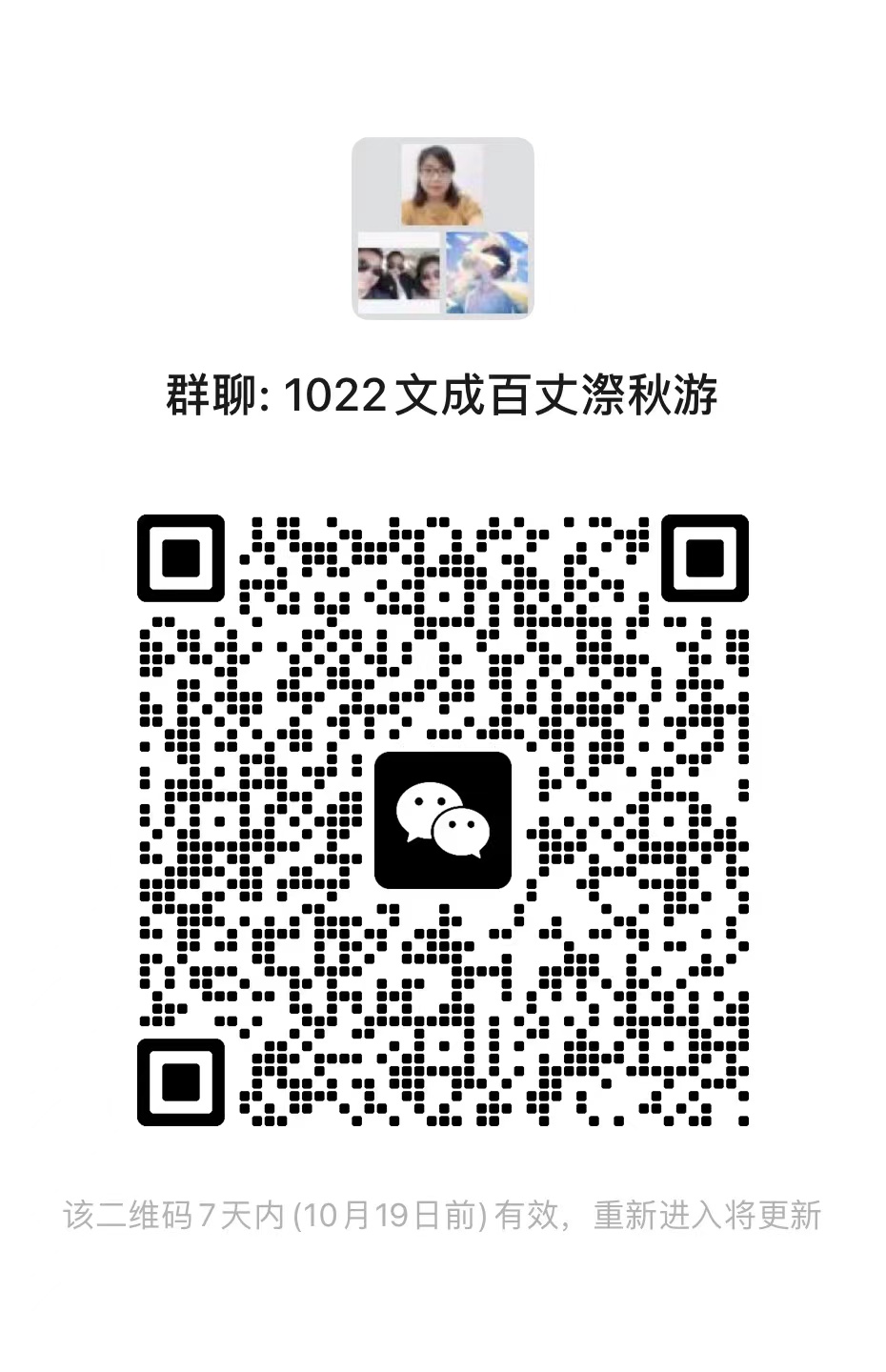 请参加的老师加入秋游微信群,并将名字和身份证号(含家属)报到沈国敏老师处,欢迎各位老师积极报名。已报名的老师请务必参加,报名不参加的老师需要承担旅行社的车费等损失,敬请理解。
