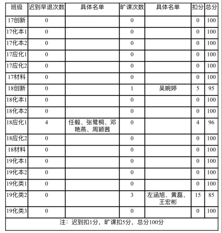 为保证疫情期间线上教学顺利展开、加强我院的学风建设、督促学生按时参与线上课程,现对2019-2020学年第二学期第十二周考勤情况进行通报。每天由各班负责人统计各科出勤情况并上报,最终一周的考勤情况于每周五进行汇总公布。