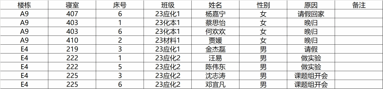 (2)若有学生在其他宿舍舍友可告知其返回核实;