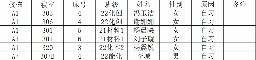 (2)若有学生在其他宿舍舍友可告知其返回核实;