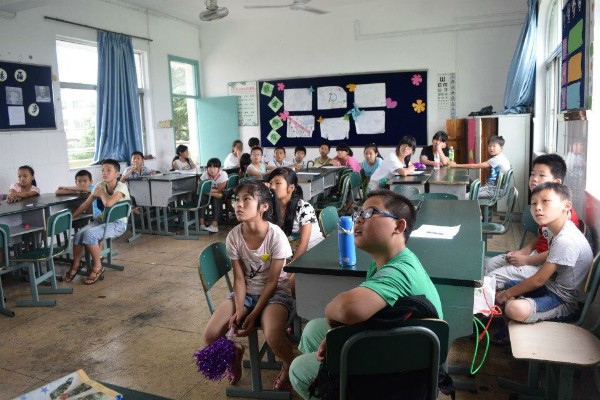 绿向导暑期社会实践队前往温州啸秋小学开展以“五水共治”为主题的护水知识宣传活动。