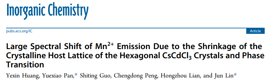 这一研究结果以“Large spectral shift of Mn2+ emission due to the shrinkage of crystalline host lattice of the hexagonal crystals CsCdCl3 and phase transition”为题发表在《Inorganic Chemistry》,并入选为封面文章。女同av