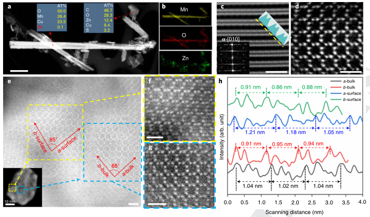 近日,我校袁一斐教授、何坤副教授和美国阿贡实验室、伊利诺伊大学和牛津大学等研究团队合作,在国际顶级期刊《Nature Sustainability》发表题为“Understanding intercalation chemistry for sustainable aqueous zinc-manganese dioxide batteries”(二次水系Zn-MnO2电池载流子嵌入机制的研究)的论文。本工作利用先进的球差校正电子显微镜、电化学分析表征和理论计算,研究了阴极材料(更具体地说是隧道结构α-MnO2)内的载流子插层化学。该研究结果表明,在水系二次Zn//ZnSO4//MnO2电池体系中, Zn2+插入隧道结构α-MnO2晶格的可能性极低,但可逆H+插入过程占主导地位;单个MnO2纳米线内由于H+吸收而引起结构不均匀性,即表面区域的隧道严重扭曲,且具有高度的各向异性膨胀的趋势。理论模拟支持了实验观察,并提供了更深入的质子存储动力学机制的见解,进一步推进了对该电池系统的基本理解,为优化质子插层动力学以更好地进行电池设计提供了理论指导。Nature Sustainability期刊同期刊发了美国陆军研究实验室许康和美国马里兰大学王春生教授的新闻评述观点,评价这项工作是“为理解此水系电池体系的工作机制和实现储能性能的升级之路清除了一个主要障碍”。