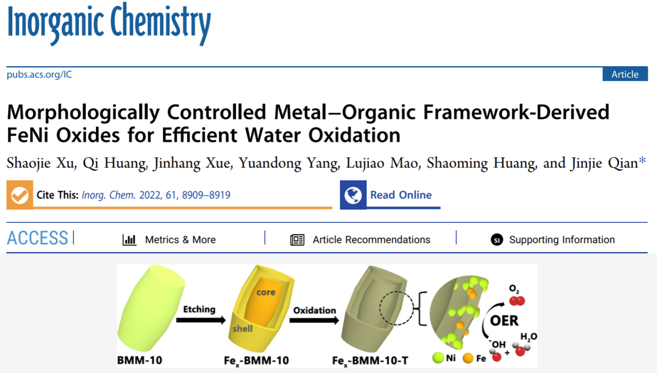 参考文献:Shaojie Xu, et al., Morphologically controlled metal-organic framework derived FeNi oxides for efficient water oxidation, Inorg. Chem. 2022, 61, 23, 8909-8919.
