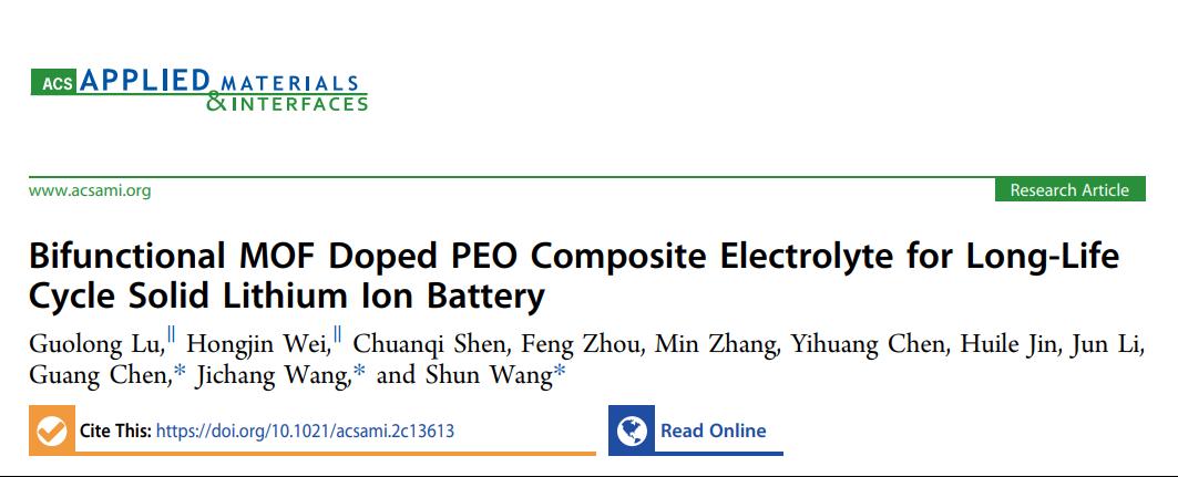 这一研究结果以“Bifunctional MOF Doped PEO Composite Electrolyte for Long-Life Cycle Solid Lithium Ion Battery”为题发表在国际权威期刊《ACS Applied Materials & Interfaces》(IF=10.383),女同av