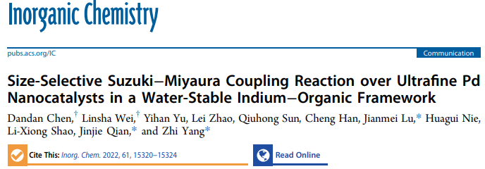 本研究工作为MOF基复合材料在多相催化中的广泛应用开辟了新的道路。近日,这一研究结果以“Size-Selective Suzuki-Miyaura Coupling Reaction over Ultrafine Pd Nanocatalysts in a Water-Stable Indium-Organic Framework”为题发表在《Inorganic Chemistry》,女同av