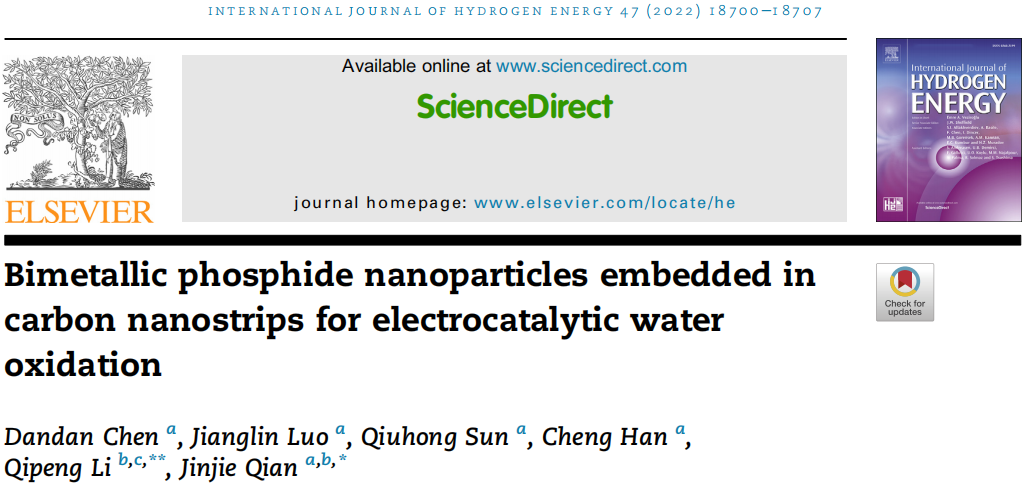 因此,本研究工作为高效电催化应用的双金属MOF衍生碳纳米材料的合理调控提供了一条全新的途径。近日,这一研究结果以“Bimetallic phosphide nanoparticles embedded in carbon nanostrips for electrocatalytic water oxidation”为题发表在《International Journal of Hydrogen Energy》,女同av