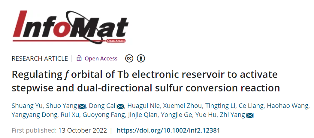 相关研究成果以“Regulating f orbital of Tb electronic reservoir to activate stepwise and dual-directional sulfur conversion reaction”为题发表在《InfoMat》(IF=24.789)上,女同av