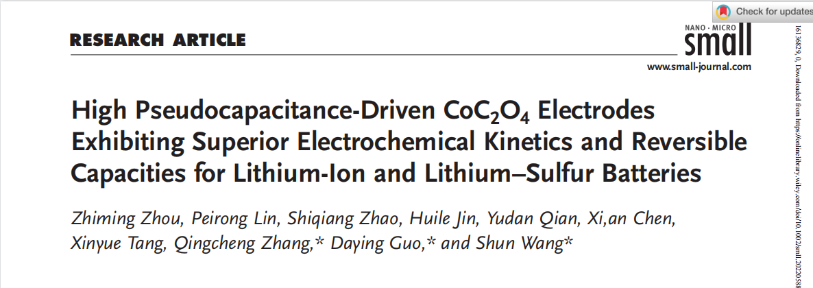 这一研究结果以“High Pseudocapacitance-driven CoC2O4 Electrodes Exhibiting Superior Electrochemical Kinetics and Reversible Capacities for Lithium-ion and Lithium-Sulfur Batteries”为题发表在国际权威期刊《Small》(IF=15.153),女同av