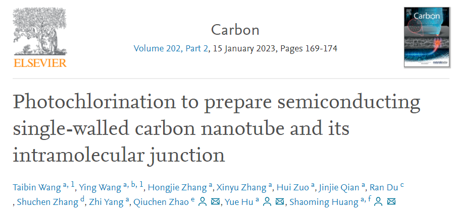 这一成果近期以“Photochlorination to prepare semiconducting single-walled carbon nanotube and its intramolecular junction”为题发表在国际期刊《Carbon》上,女同av