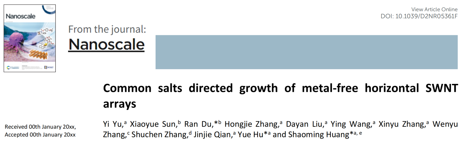 这一成果近期以“Common salts directed growth of metal-free horizontal SWNT arrays”为题发表在国际期刊《Nanoscale》上,女同av
