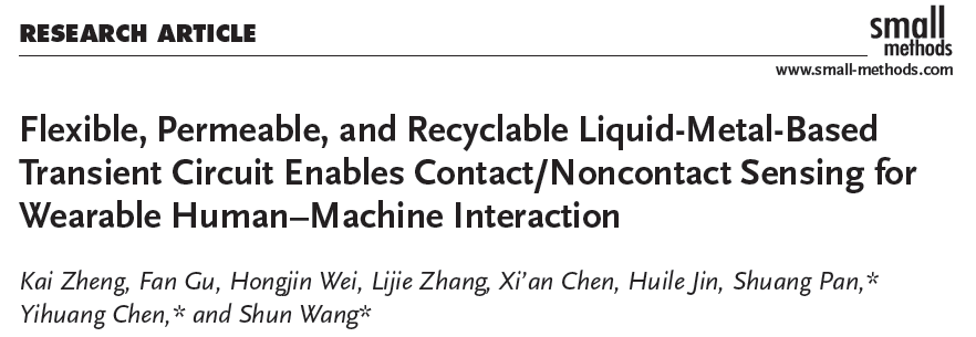 相关研究以“Flexible, permeable and recyclable liquid-metal-based transient circuit enables contact/non-contact sensing for wearable human-machine interaction”为题发表在国际期刊《Small Methods》(IF=15.367)上,女同av