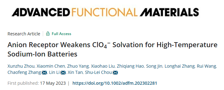 可充电池对季节性和日常工作温度波动的温度耐受性极大影响其稳定性和安全性。然而,高温会加剧电解液的持续性分解,生成不稳定的正极-电解液界面膜(CEI),导致电池容量的快速衰减。近日,我院碳中和技术创新研究院李林团队联合安徽大学在国际权威期刊《Advanced Functional Materials》上发表题为《Anion Receptor Weakens ClO4–Solvation for High-Temperature Sodium-Ion Batteries》的学术论文。该工作引入了阴离子受体三(五氟苯基)硼烷(TPFPB)作为电解液添加剂,通过构建稳固且富含NaF的CEI膜提升电池的高温循环稳定性。密度函数理论(DFT)证明TPFPB和ClO4−阴离子之间通过B-O键表现出强相互作用,体现为两方面优势:其一,高氟化末端的TPFPB添加剂通过ClO4−阴离子参与中心Na+的溶剂化构型配位,并优先分解生成稳固且富含NaF的CEI膜;其二,削弱了ClO4−的溶剂化作用,促进溶剂与Na+阳离子的配位能力,显著提高电解液的氧化稳定性。所构筑的电解液在磷酸钒钠正极中,在4.2V的高截止电压(vs. Na+/Na)和60℃的高温条件下,100次循环后容量保持率达86.9%,并在-30至60°C的宽温域范围内展现出优异的高压稳定性及倍率性能。女同av相关的文章发表在国际著名期刊Advanced Functional Materials上,我院侴术雷教授、李林特聘教授为该论文共同通讯作者,相关工作受到国家自然科学基金、安徽省自然科学基金、浙江省自然科学基金、国家电网科技计划等项目的支持。