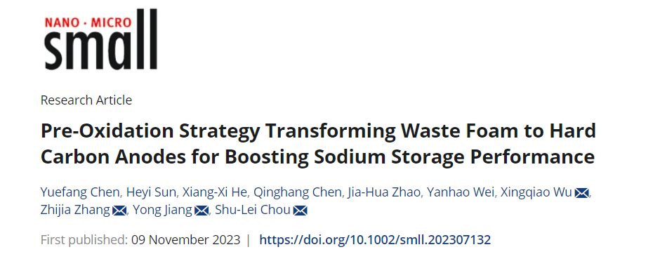 该研究以题目为“Pre-oxidation Strategy Transforming Waste Foam to Hard Carbon Anodes for Boosting Sodium Storage Performance”的论文发表在材料领域国际顶级期刊《Small》。我院侴术雷教授、吴星樵博士以及天津工业大学张志佳教授、姜勇教授为该论文共同通讯作者,联合培养学生陈月芳为第一作者,女同av