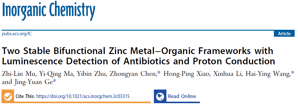 相关研究成果以“Two Stable Bifunctional Zinc Metal-Organic Frameworks with Luminescence Detection of Antibiotics and Proton Conduction”为题,近日发表在《Inorganic Chemistry》期刊上,女同av