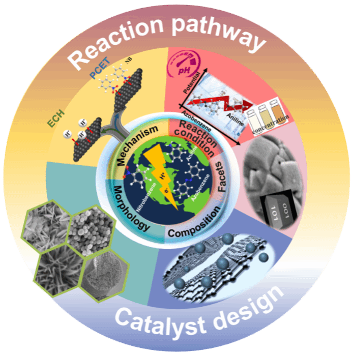 在众多转化NB方法中,电催化硝基苯还原反应(eNBRR)取得了较大进展,从最初的低活性单阴极NB电化学转化发展为阴极eNBRR与阳极反应耦合等。到目前为止,转化效率已接近 100%,产生了许多增值类产品,如苯胺、偶氮苯等,它们是染料和药物的关键原料。eNBRR的显著发展可以归因于众多开创性的电催化剂的发展和对其潜在机制的理解。然而,由于eNBRR的电催化性能相对较低,包括产品选择性和产量、能效和稳定性等问题,要使其进入大规模的工业市场还有很长的路要走。因此,迫切需要一个全面的总结性工作,来分析确定影响这些最近开发的eNBRR催化剂性能的主要内在因素,进而指导更先进催化体系的设计开发。