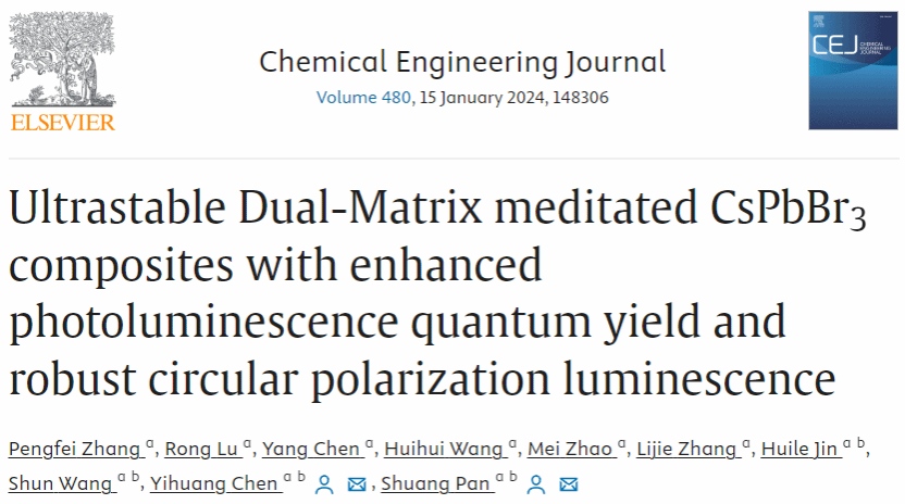 该成果以“Ultrastable Dual-Matrix meditated CsPbBr3 composites with enhanced photoluminescence quantum yield and robust circular polarization luminescence”为题发表在Chemical Engineering Journal期刊(IF=15.1,SCI一区)上。女同av