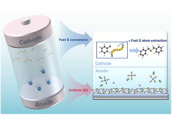 随着电动汽车、智能电子设备和大规模储能的快速发展,人们迫切需要高比容量的储能设备来满足日益增长的市场需求。锂硫电池因具有高理论能量密度、低成本和环境友好的特点受到了人们的广泛关注。然而,阴极侧可溶性多硫化锂的穿梭、固-液-固反应动力学缓慢,以及阳极侧不稳定的锂金属界面造成的电解液大量消耗和严重的锂枝晶生长等问题,极大地阻碍了锂硫电池的商业化进程。在潜在的策略中,电解液优化工程凭借可以同时解决硫阴极和锂阳极中存在问题的特点,吸引了研究者的兴趣。而使用有机电解液添加剂作为当中最为经济且高效的方法,是首选的改善策略。