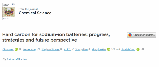 该成果以“Hard Carbon for Sodium-ion Batteries: Progress, Strategy and Future Perspective”为题,发表在英国皇家化学会期刊Chemical Science上。我院博士后吴春为论文第一作者,侴术雷教授、吴星樵博士为该论文共同通讯作者,碳中和技术创新研究院为第一单位。相关工作受到国家自然科学基金、浙江省自然科学基金、温州市自然科学基金和国家电网公司科技项目的资助。