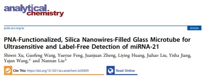 文章链接:PNA-Functionalized, Silica Nanowires-Filled Glass Microtube for Ultrasensitive and Label-Free Detection of miRNA-21, Anal. Chem., 2024, doi: 10.1021/acs.analchem.3c05839。