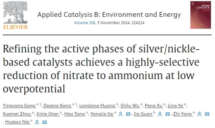 相关研究成果以《Refining the Active Phases of Silver/Nickle-based Catalysts Achieves a Highly-Selective Reduction of Nitrate to Ammonium at Low Overpotential》为题发表在《Applied Catalysis B-Environmental》(IF:22.1)上。女同av