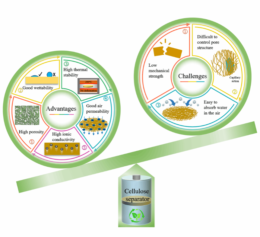 图1 纤维素隔膜的优势与挑战