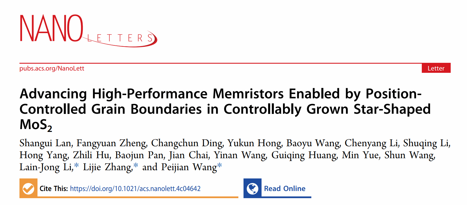 该工作以“Advancing High-Performance Memristors Enabled by Position-Controlled Grain Boundaries in Controllably Grown Star-Shaped MoS2”为题发表在国际纳米顶尖期刊《Nano Letters》上。女同av