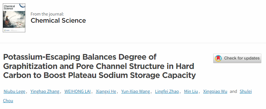 此项工作以Potassium-Escaping Balances Degree of Graphitization and Pore Channel Structure in Hard Carbon to Boost Plateau Sodium Storage Capacity为题发表在国际期刊Chemical Science上,女同av