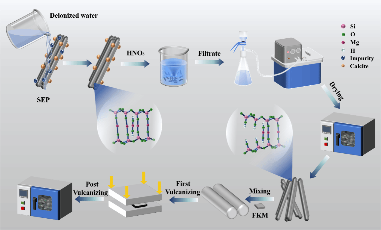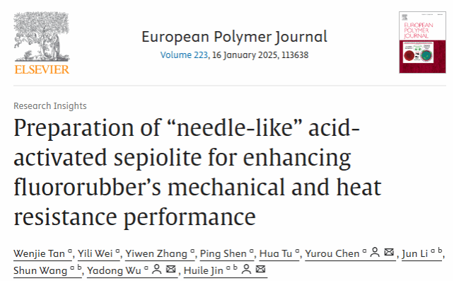 该成果以“Preparation of “needle-like” acid-activated sepiolite for enhancing fluororubber’s mechanical and heat resistance performance”为题发表在European Polymer Journal期刊(IF=5.8,SCI二区)上,女同av