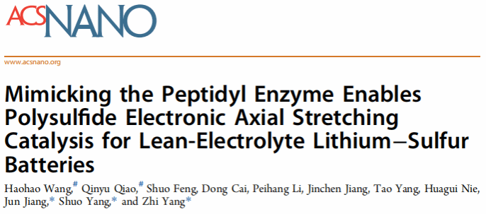 该工作以“Mimicking the Peptidyl Enzyme Enables Polysulfide Electronic Axial Stretching Catalysis for Lean-Electrolyte Lithium-Sulfur Batteries”为题发表于国际顶级期刊《ACS Nano》(IF=16.0)。女同av