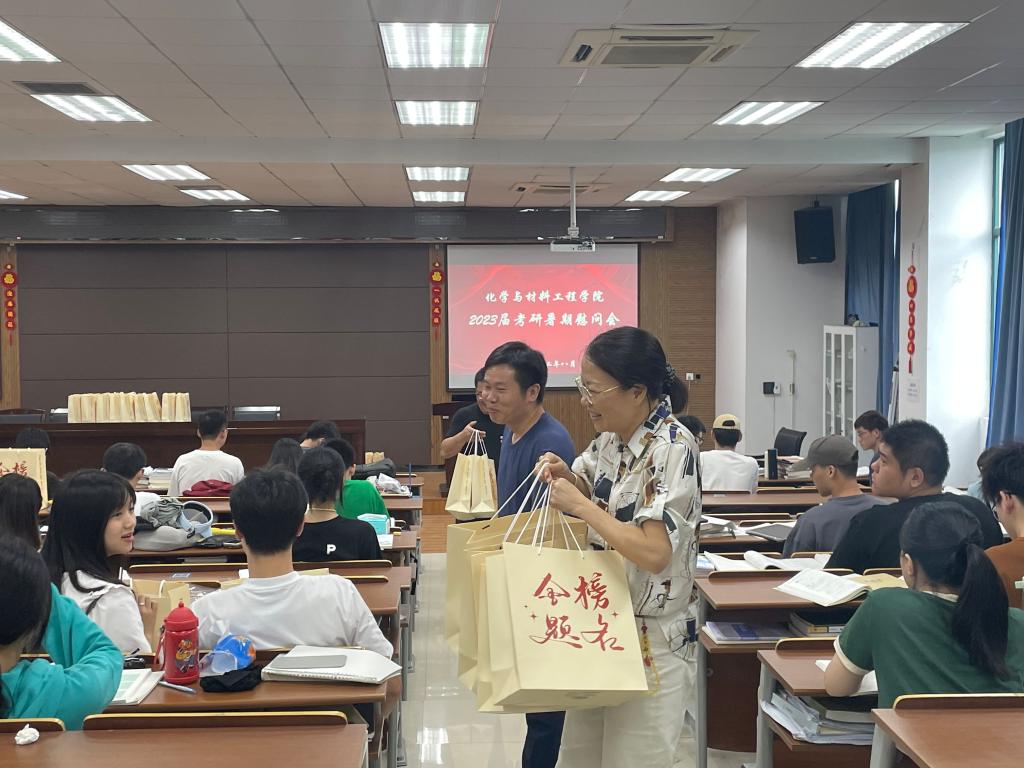 随后,刘吟书记通过讲述自身经历和女儿的考研经验来勉励同学们,她表示人生就应该经历这样一个努力的过程,坚持很难,但要迎难而上。刘书记建议大家可以结伴考研,好的研友会给予很多帮助,互相勉励,才能走得更高更远。同时也要注意学习的方式方法,有问题要及时找老师、找学长学姐,多沟通多交流,可以避免走弯路。