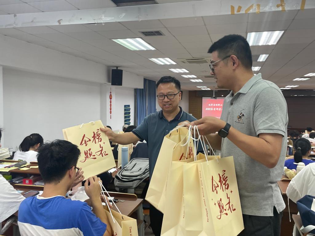 最后,出席大会的各位老师一起为同学们送上了精心准备的慰问品,鼓励大家继续努力,积极备考。