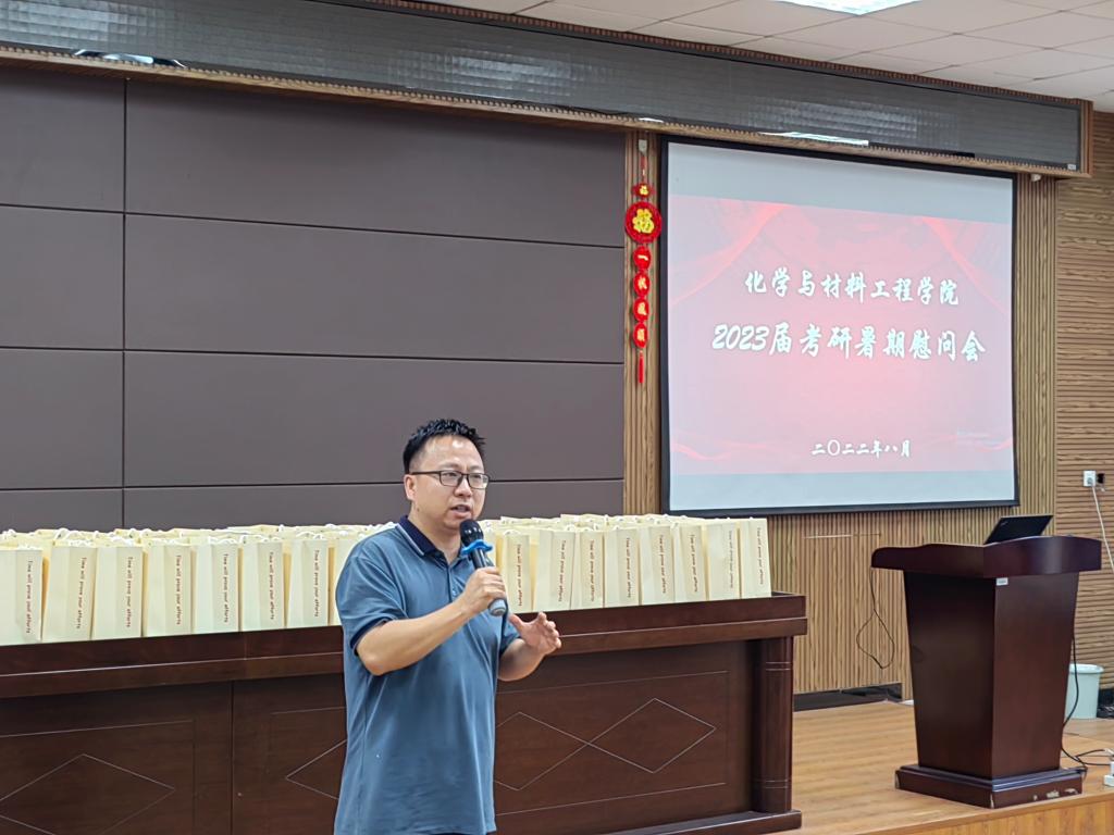 2019级暑期考研慰问大会在11C-401考研教室举行。学院杨植院长、刘吟书记、周敬业副书记、班主任徐进、班主任沈晓军、辅导员武晓岚以及2019级考研留校学生出席本次大会,大会由周敬业副书记主持。