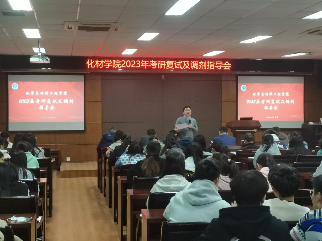 会议伊始,周敬业副书记简要介绍了2023届同学考研的基本情况,周书记肯定了同学们近一年为考研作的努力,分析了今年的考研形势,提醒同学们不因为自己分数高而掉以轻心,也不因为自己分数低自怨自艾放弃调剂,所有同学都应该以积极的心态备战复试。