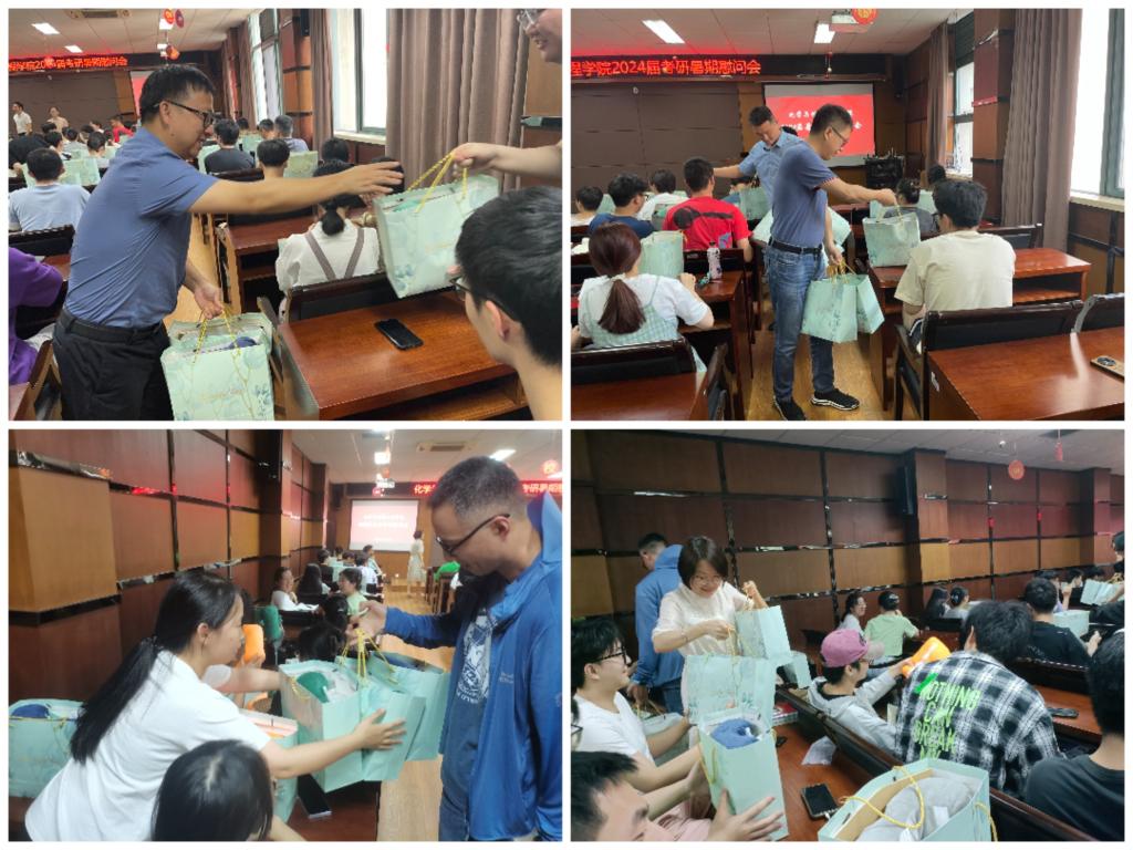 最后,出席大会的各位老师为同学们送上精心准备的慰问品,鼓励大家继续努力,积极备考。预祝我院所有考研学子戒骄戒躁,踏实努力,一战成硕!