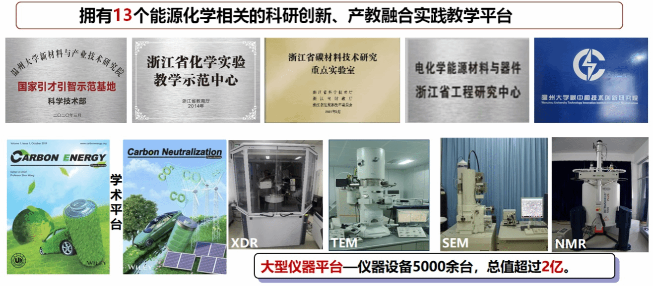 依托国家引才引智示范基地、浙江省碳材料技术研究重点实验室、浙江省微纳碳材料技术国际科技合作基地、浙江省化学实验教学示范中心、电化学能源材料与器件浙江省工程研究中心、浙江-加拿大能源存储与电催化联合实验室、温州市碳中和技术创新研究院、女同av