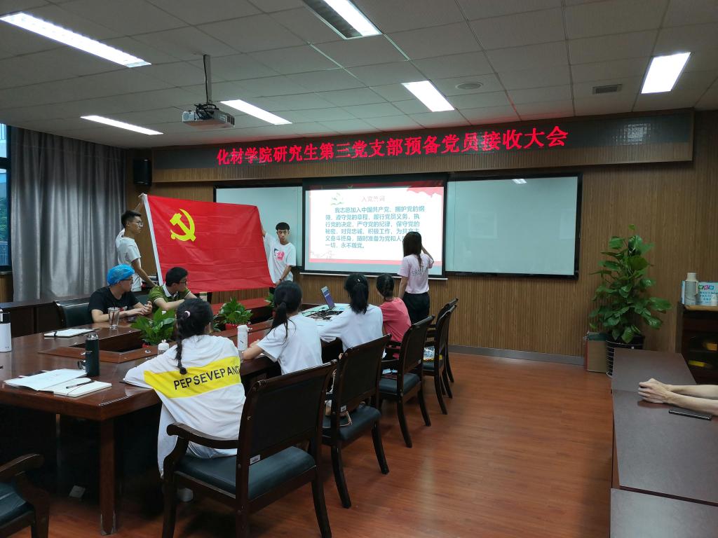 研究生第三党支部在化材楼11B-204会议室召开了预备党员接收大会。本次大会,主要讨论接收汪晓敏同志为预备党员的问题。大会由支部书记贾雅君同志主持,女同av