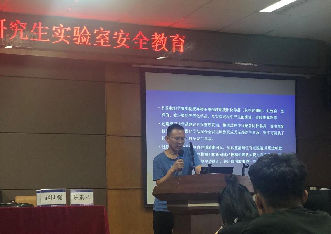 着重强调了新生实验室准入条件、实验室安全守则、安全规范、日常安全管理制度及措施及安全设施情况及应急处理等方面的情况,要求新生高标准、严要求,时刻注意实验室安全,遇到问题及时处理,坚决杜绝安全隐患。
