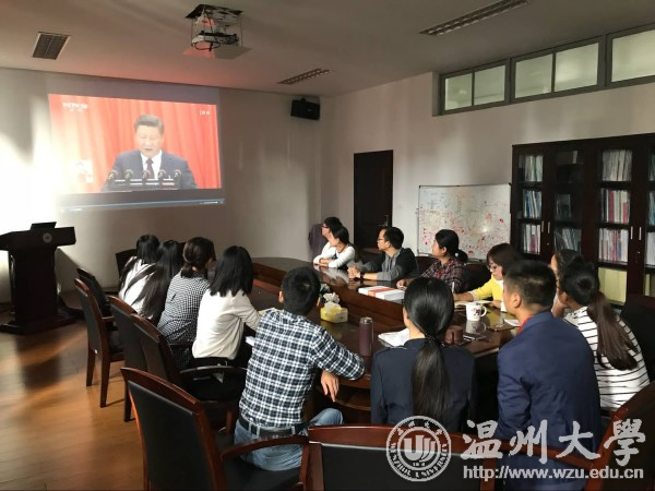 师生在11B208、204两个会场观看中国共产党第十九次全国代表大会开幕盛况,收看习近平同志代表十八届中央委员会向大会所作的工作报告。报告会结束后,教工支部和学生支部组织党员进行热烈讨论。