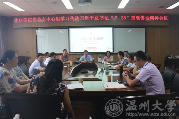 随后,王舜院长强调我院党总支中心组要认真组织学习习近平总书记“7.26”重要讲话精神,进一步增强“四个意识”,坚决维护习近平总书记的领导核心地位,站稳政治立场,把准政治方向,坚定理想信念,做政治上的明白人。同时结合学院自身发展要求,不断加强学院化学专业建设,始终坚持正确育人方向,为实现中国梦输送源源不断的化学型专用人才。