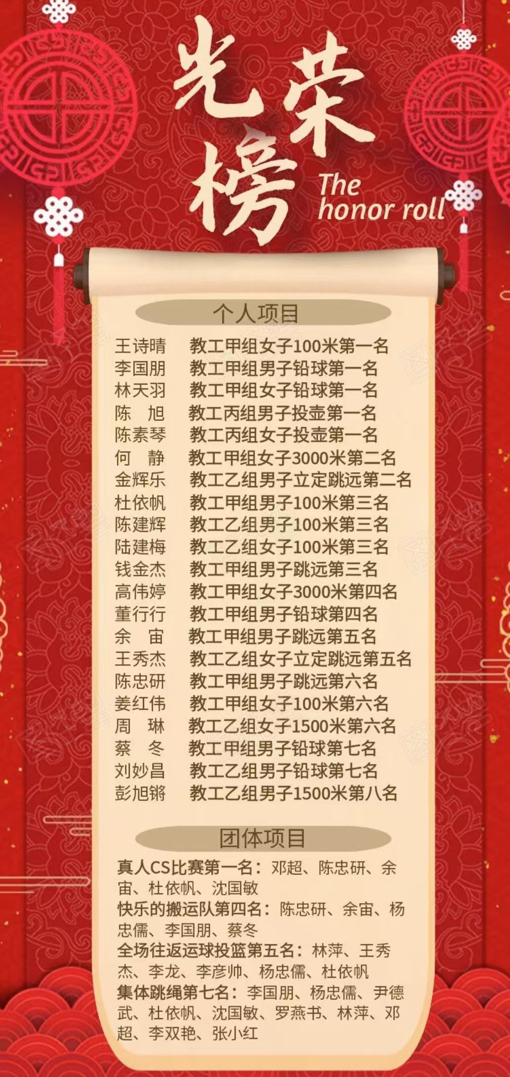 的宝贵财富!本次运动会促进了我院教职工参与运动的热情,提升了爱院荣院的自豪感和荣誉感,展现了化材学院昂扬团结的精神风貌,激励所有化材人在今后的工作学习中更加踔厉奋发,勇毅前行!