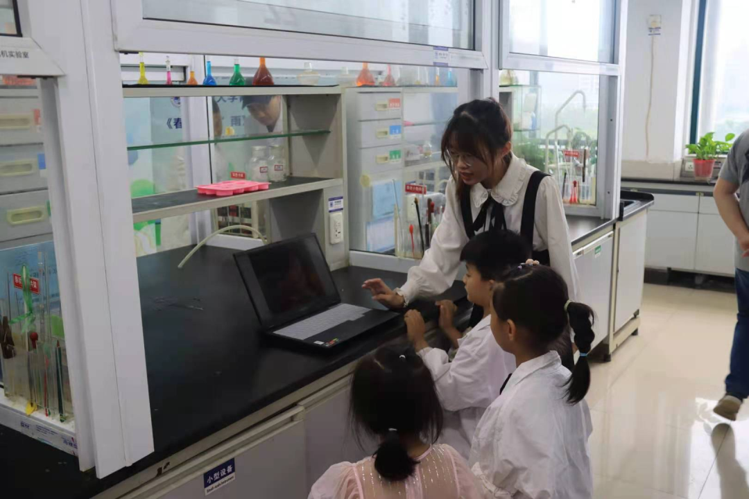 今天,实验室里,多了一些可爱的人儿,小小的身影在实验台前来回奔波。拖地的白大褂,握不住的仪器,专注的眼神……白大褂之间的交流,眼神无声,言语有声,周遭没有喧嚣,眼前即是世界。孩子静下心来品读名著,增涨文学知识,感受红楼梦的文学魅力,让文学在孩子的心中生根发芽。有趣的化学实验,成为孩子们的启蒙师,点燃孩子心中对化学的热爱。