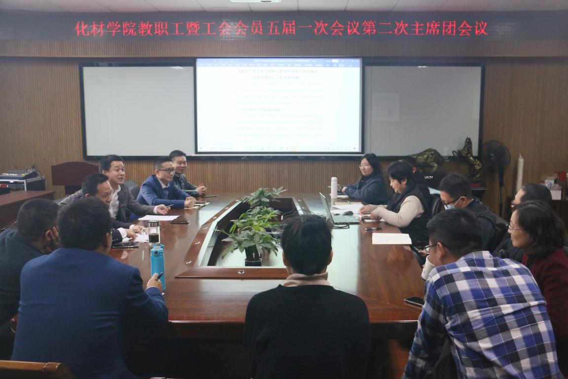 2021年2月28日下午1:30,女同av 在11B204会议室召开女同av 教职工暨工会会员五届一次会议第二次主席团会议。女同av 院长王舜、党委书记熊琳、副院长杨植等学院领导,学院教职工工会主席团出席本次会议。会议由党委书记熊琳主持。